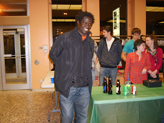 Puis ce fut plus d'une heure de contes québéco-africains d'un homme riche d'une grande culture qui veut faire tomber les barrières entre la société d’accueil et les immigrants.Après l'entracte, ce fut ce qu'il appelle la deuxième partie interactive de la soirée. On a allumé les lumières, on posait des questions, et il répondait .... S'il voulait.